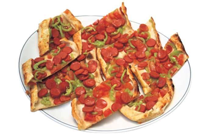 İncecik açılmış nefis ulus pide hamuruyla % 100 dana etinden elde edilen sosisin buluşması